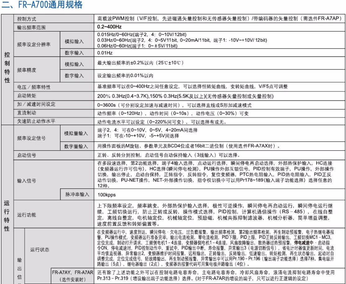 三菱变频器A700系列